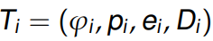 - execution time ei : Task Ti에 속하는 모든 잡들의 공통적인 실행 시간.