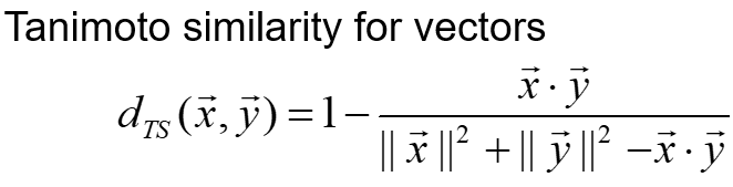자카드 계수가 집합 간의 거리를 나타내는데 반해 타니모토 계수는 백터 간의 거리를 표현한다.