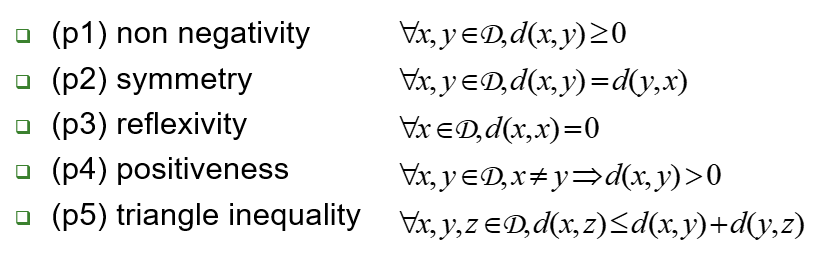 Metric space M =(D,d)의 정의는 다음과 같다.
