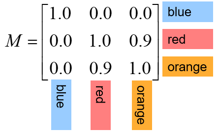 다음과 같이, red와 orange 사이의 상관관계를 추가해준 보정값 M 넣