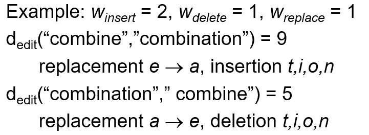 Levenstein(레벤시테인) 거리라고도 불리는 edit distance는, 문자열 x을 문자열 y로 바꾸는데 필요한 최소한의 기본 변환의 수를 나타내는 거리이다.
