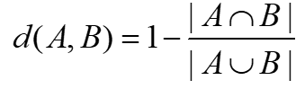 즉 집합간에 겹치는 원소가 많을 수록 값은 0과 가까워지고, 겹치는 원소가 없을 수록 1과 가까워진다.