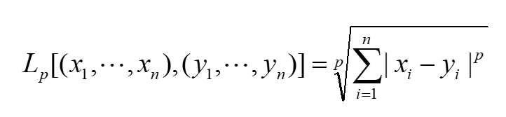민코프스키 거리 이의 확장으로 1차원부터 무한대의 차원까지의 벡터 사이의 거리를 나타낼 수 있다.